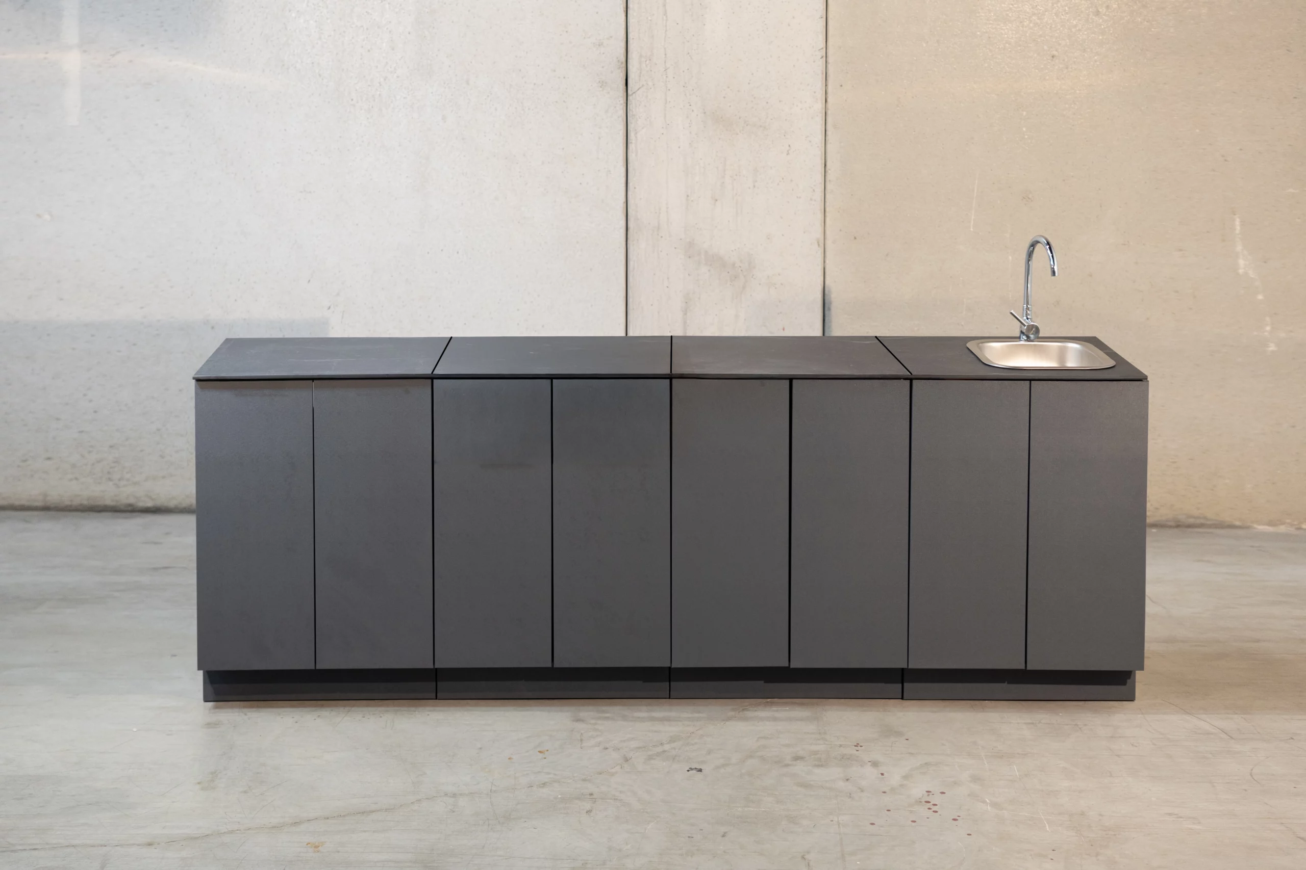 También ofrecemos cocinas de exterior modulares y configurables, disponibles en formatos en línea, en L o en isla, con encimeras extensibles, fregaderos, almacenamiento y acabados resistentes a cualquier clima. Todos nuestros productos cuentan con certificación ISO 9001 e ISO 14001, y están respaldados por una garantía de 20 años.